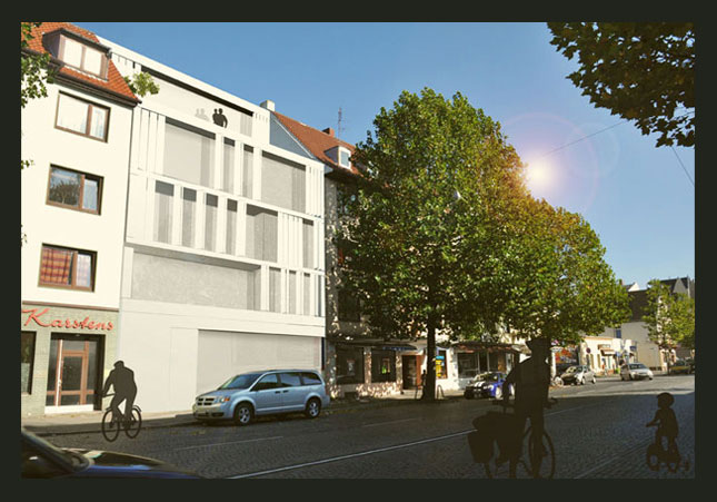 Die 255 m² große Baulücke befindet sich in einer belebten Hauptstraße im Stadtteil Lehe. Sie wird durch die viergeschossigen Nachbargebäude definiert. Das Grundstück wird ferner durch einen rückwärtig gelegenen Parkplatz begrenzt.